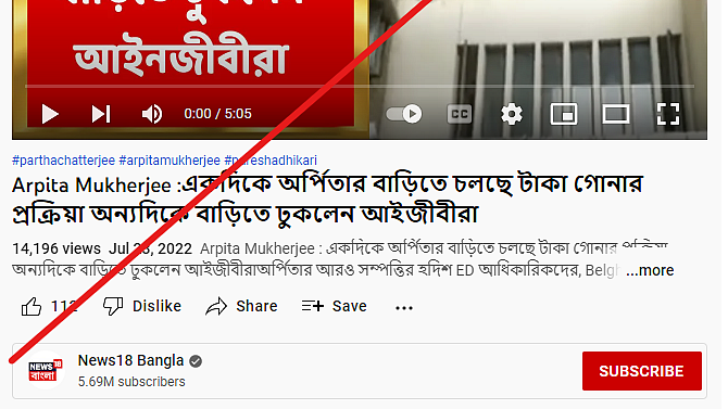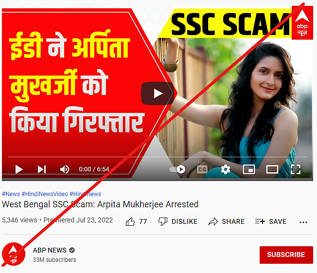 News18 Bangla and ABP NEWS also posted videos on their YouTube channels about Arpita Mukherjee's arrest and used a wrong picture in the thumbnail, misidentifying Mukherjee.