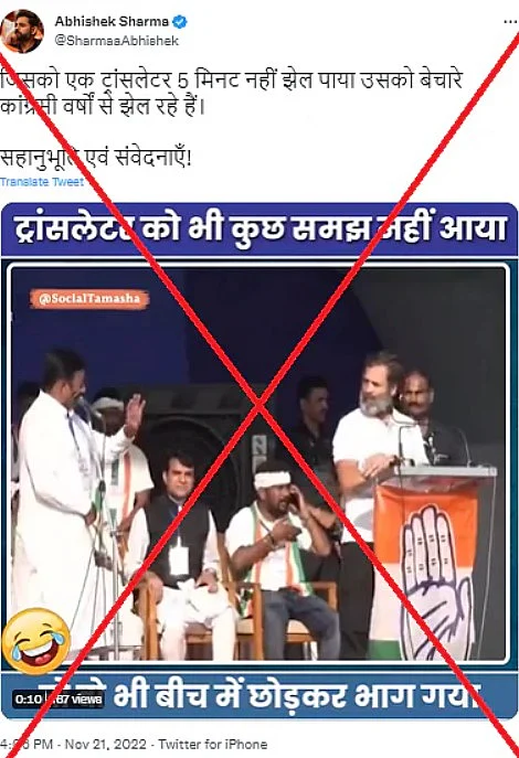 Conclusion: The viral claim about translator 'running away' from the stage to avoid translating Rahul Gandhi's speech in Gujarat is misleading.