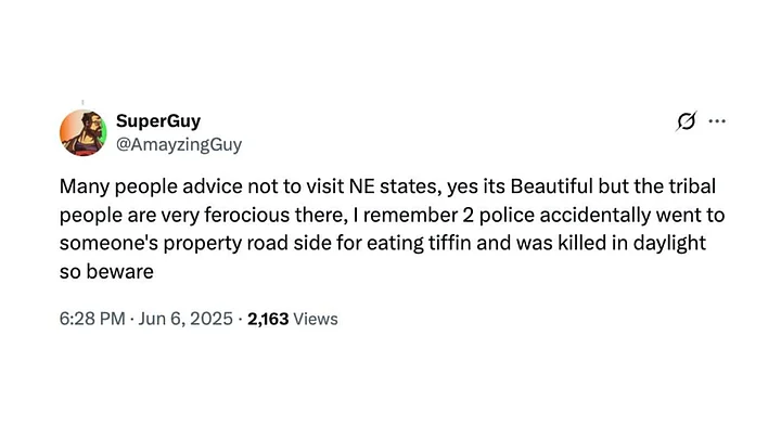 Take this post for example - An X (formerly Twitter) user called ‘@vemulajay45’, while replying to a post on Raghuvanshi’s death, said that tribals of Meghalaya were behind the incident. He claimed that the tribals attacked non-locals due to “brainwashing from Christian missionaries”.
