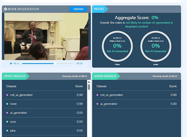 What did detection tools show?: Team WebQoof passed the particular segment from the YouTube video on an AI detection tool named 'Hive Moderation'. It concluded that the clip was "not likely to contain any AI-generated or deepfake content".
