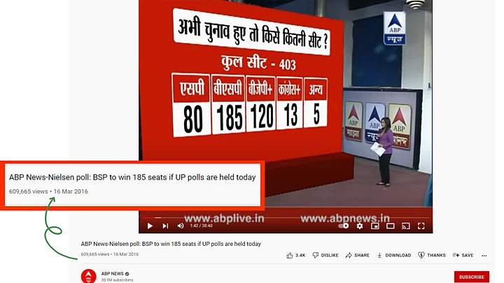 A series of images from an ABP News show predicting that the Bahujan Samajwadi Party would win 185 out of 403 seats if elections were held today has gone viral ahead of the upcoming 2022 Uttar Pradesh Assembly elections.