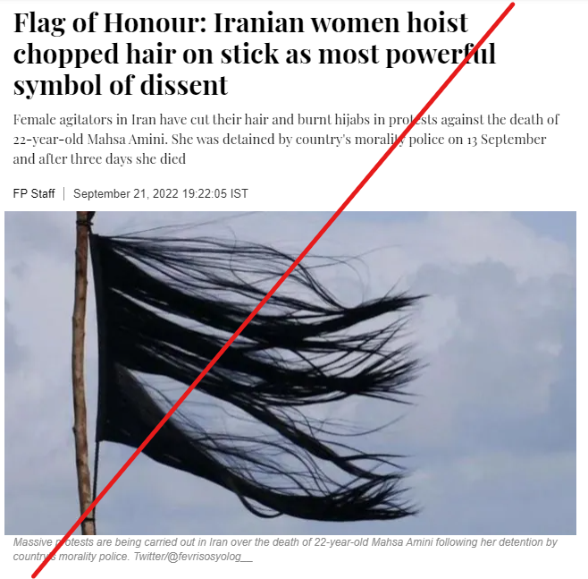 An image showing a flag made of hair is going viral on social media with a claim that it was hoisted by Iranian women as a symbol of defiance while protesting over the death of 22-year-old Mahsa Amini in Iran, who was arrested by the 'morality police' for 'failing to meet' the country's strict dress code for women.