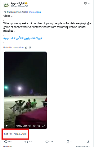 The report noted that the video showed missiles being fired from Saudi land in Jazan, Samtah Governorate to intercept Houthi missiles before they hit their intended targets within Saudi Arabia.