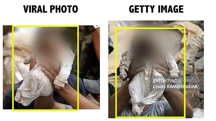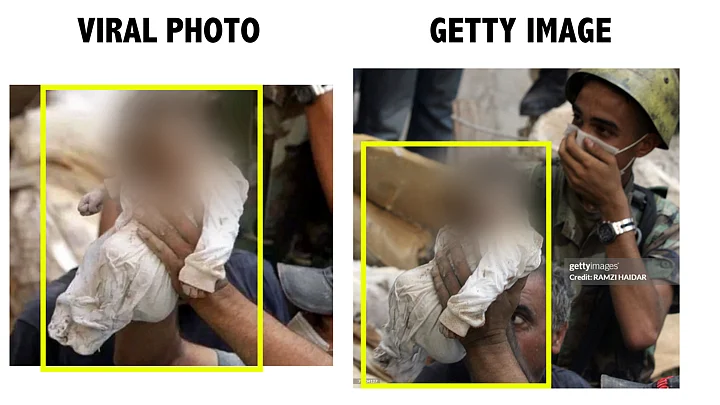The description along with these images stated that it showed a rescuer holding a body of 10 day-old baby after taking it out from rubble of a building hit by an Israeli strike in Beirut.