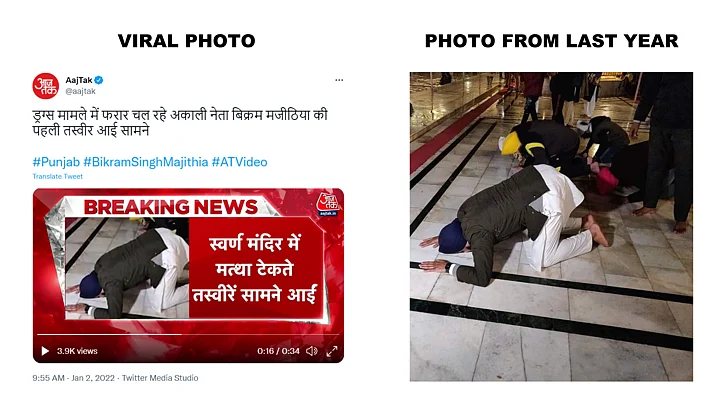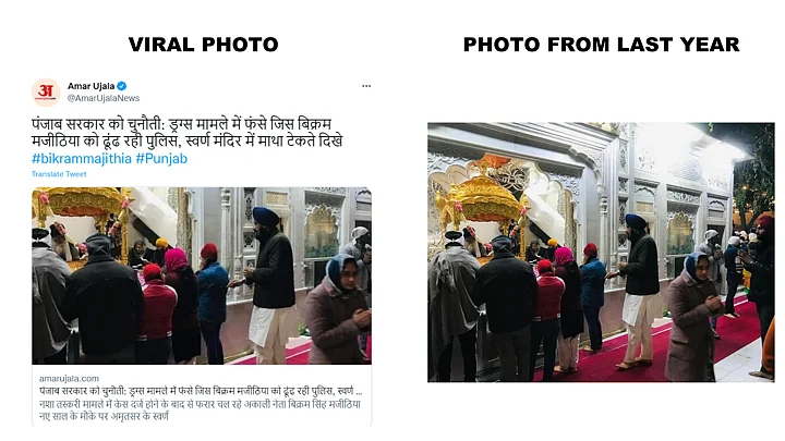 The post didn't mention if the photographs were recent or old. However, social media users and news organisations shared the images claiming that it showed Majithia at the Golden Temple on News Years' day.
