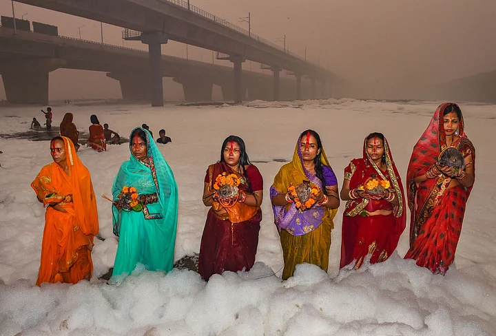 This year the froth in the Yamuna river, while still alarming, was slightly less. Below are some other pictures from this year’s Chhath Puja in Delhi's Kalindi Kunj.