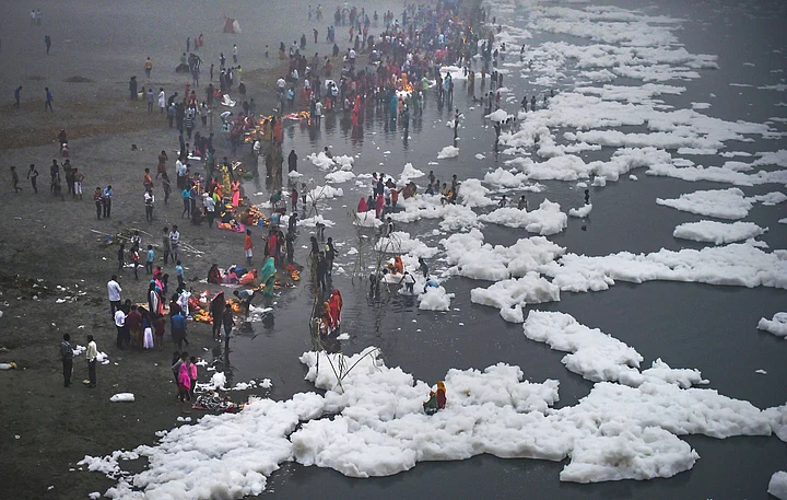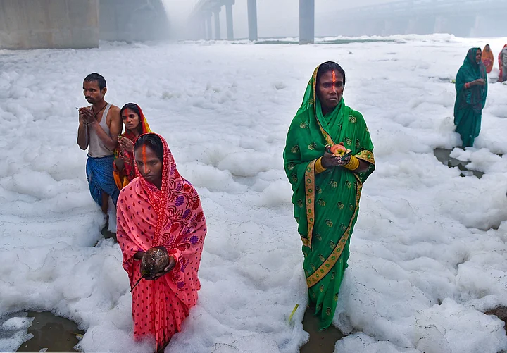 Several pictures of Chhath Puja in Delhi are being shared on social media claiming to be from the celebrations held on 2 November 2019. The photos show devotees offering homage to the sun god standing in waist-deep toxic foam in Delhi's Kalindi Kunj.