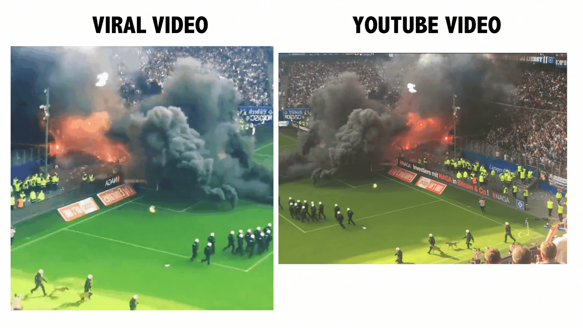 The video shared by '4S-TV' was titled, "Hamburger SV – Borussia Mönchengladbach | Pyro-Riot & Game Interruption | 12.05.2018."