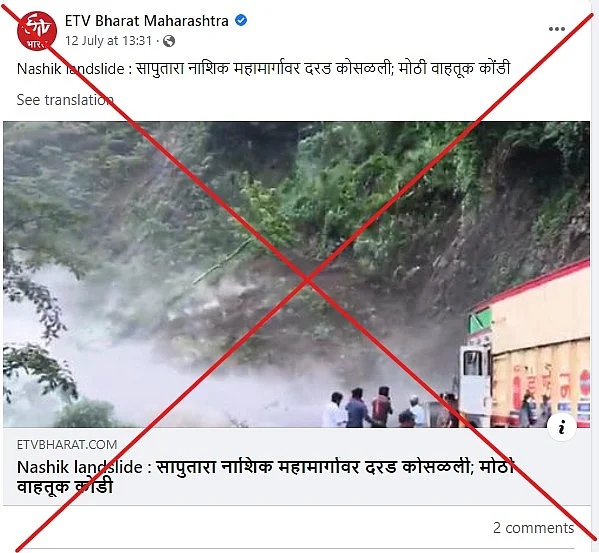 The claims shared by TV9 Bharatvarsh, Zee 24 Taas, and ETV Bharat Maharashtra stated that the landslide happened in Nashik, Maharashtra.