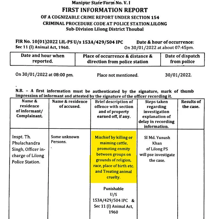We also accessed the FIR copy of the incident, which stated that the FIR was registered under sections 153A, 429, and 504 of the IPC and Section 11(1) of the Prevention of Cruelty to Animals Act, 1960.