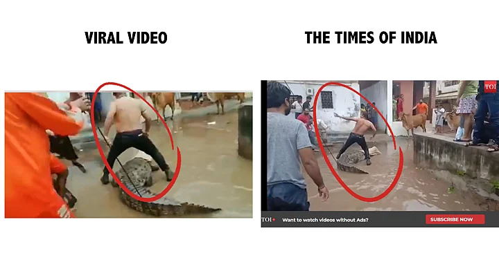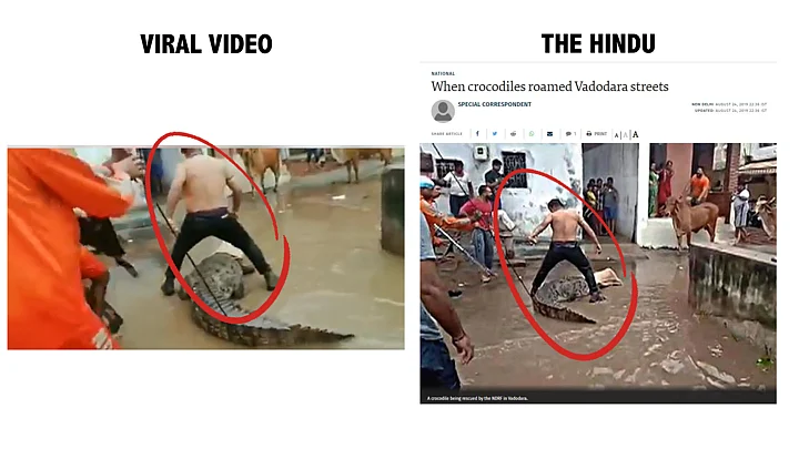 The viral video is the continuation of the video carried by The Times of India. The Hindu's report from 24 August 2019 about crocodiles on Vadodara's street also carries a snipet from the viral video.