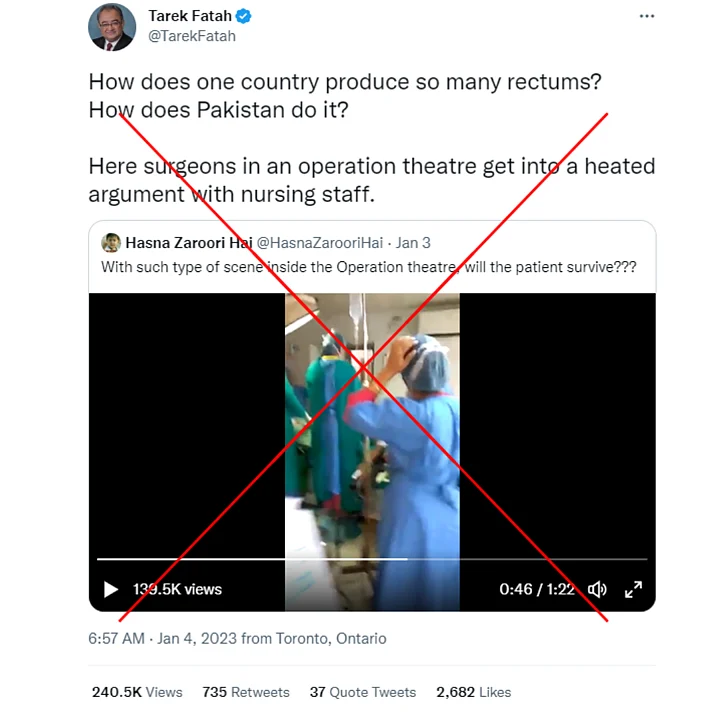 Pakistani-Canadian columnist Tarek Fatah, who has been called out for spreading disinformation several times, also shared the video and claimed it to be from Pakistan.