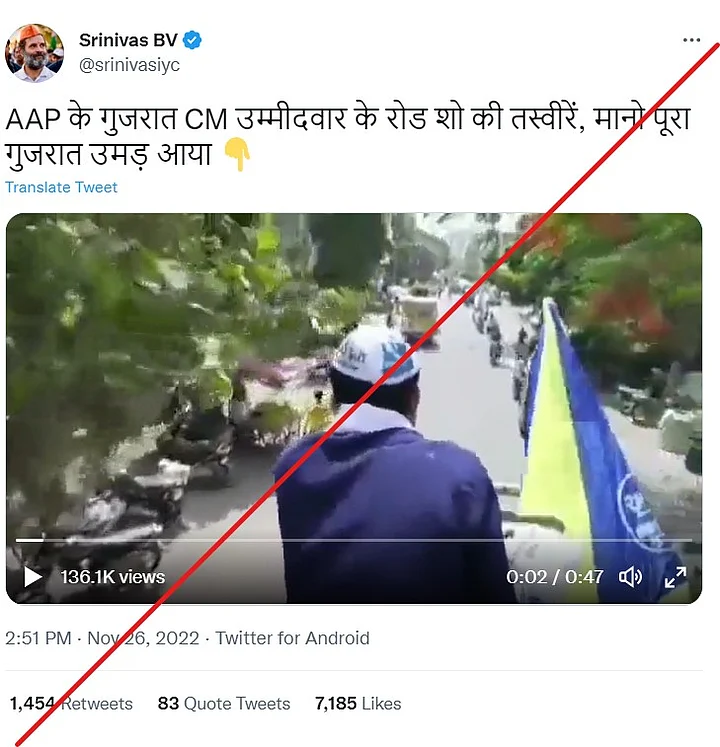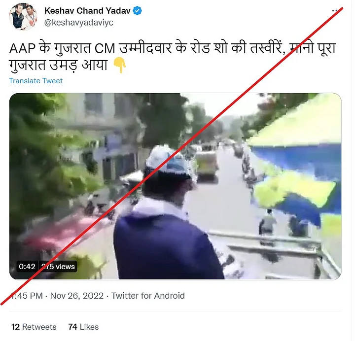 An old video of a roadshow by Aam Aadmi Party’s (AAP) Gujarat chief ministerial candidate Isudan Gadhvi is going viral on social media to claim that nobody showed up in the rally to support him.