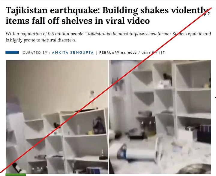 A video showing things falling down from the shelves due to a tremor caused by a strong earthquake is going viral on social media as a video from Tajikistan.