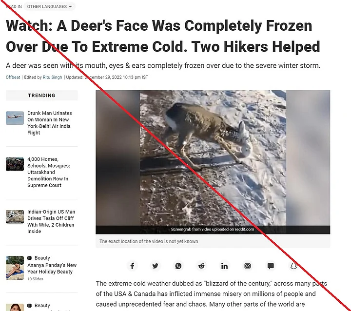 NDTV has shared the clip linking it to the blizzard. Media outlets like DNA India and Inshorts shared it as a recent incident.