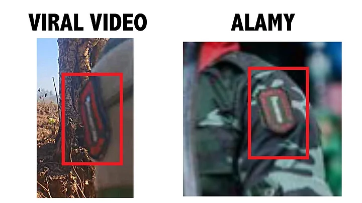 We also found an image of the Karen soldiers on an image stock website, Alamy, and the insignia from the viral video matched with the one seen here.