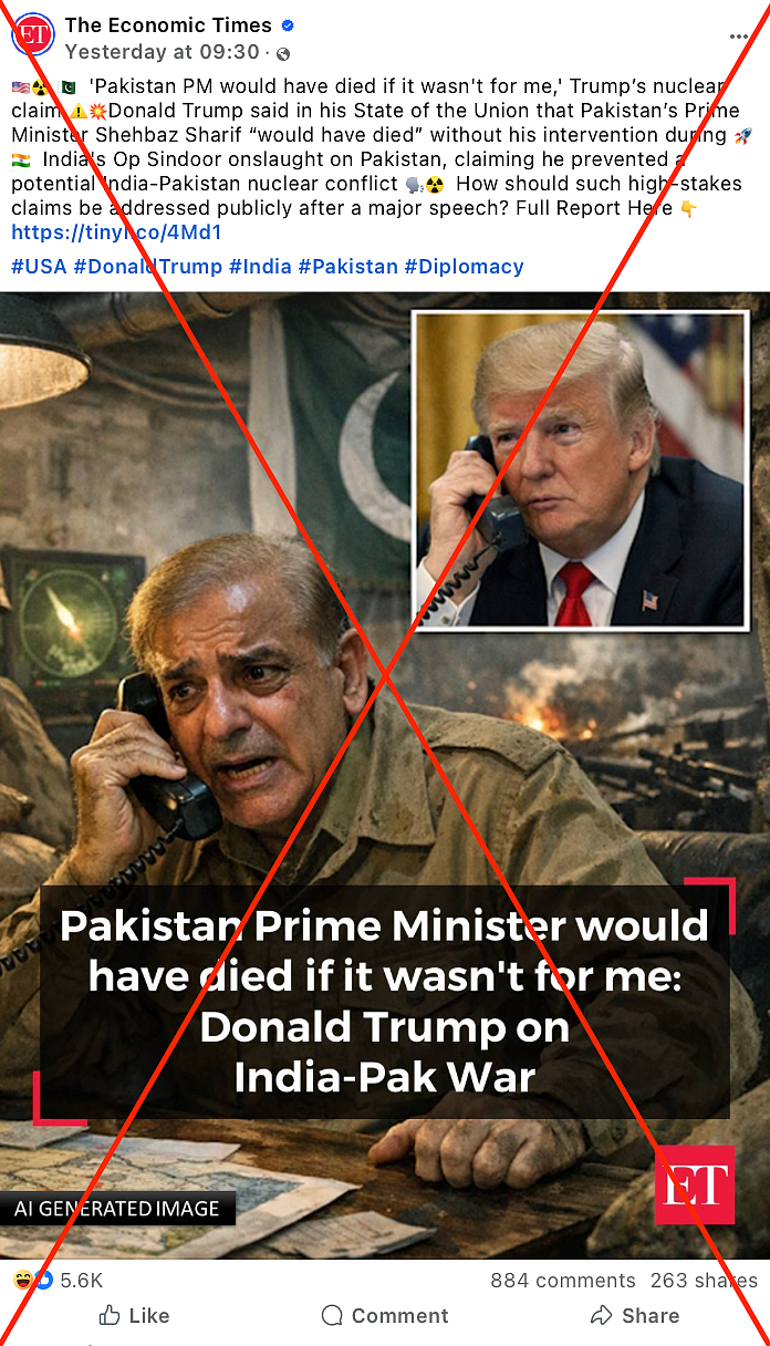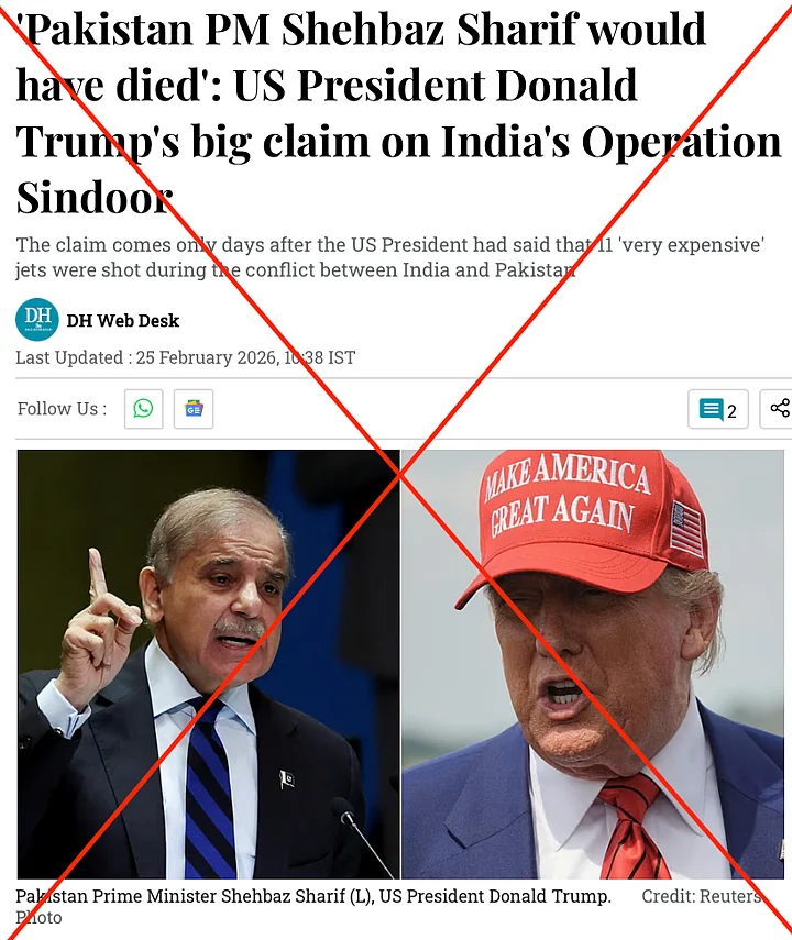 Conclusion: News organisations and social media users are sharing posts to falsely claim that US President Donald Trump said that Pakistan Prime Minister Shabaz Sharif would have died without his intervention.