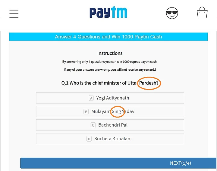 One such scam that’s been doing the rounds recently is a simple four-question quiz that claims that you can earn Rs 1,000 as Paytm cash.