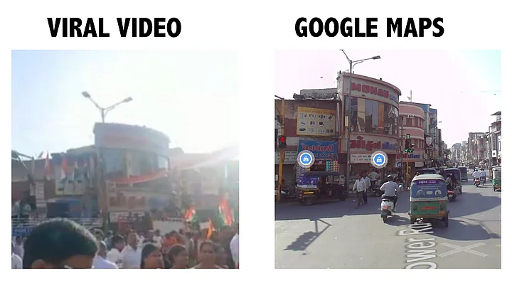 Comparing visuals: Team WebQoof compared keyframes from the viral clip to the visuals available on Google Maps and found that the former was indeed recorded in Gujarat's Surat.