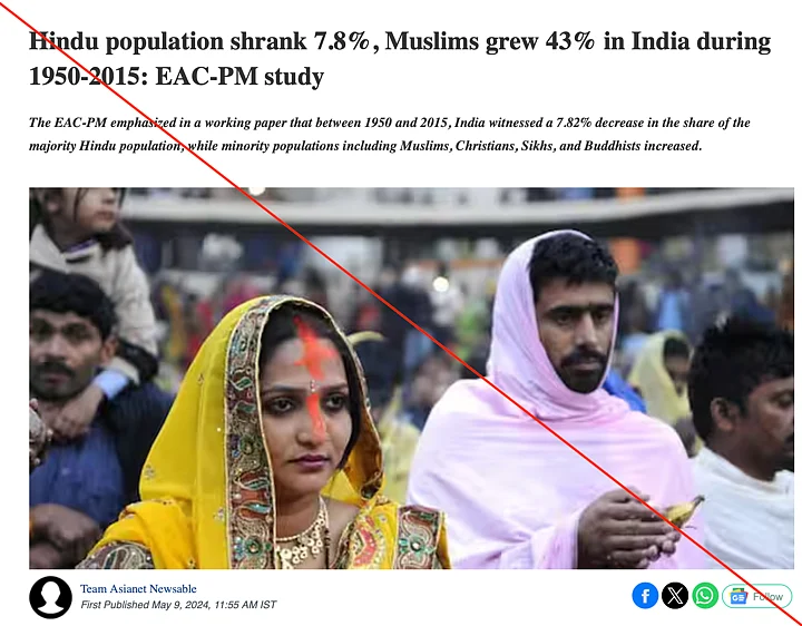 The claim: News organisations and social media users have published some findings from the report, claiming that the percentage of Hindus in India fell by around eight percent, while the percentage of Muslims rose by approximately 43 percent.