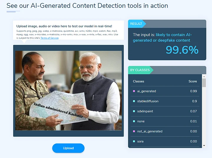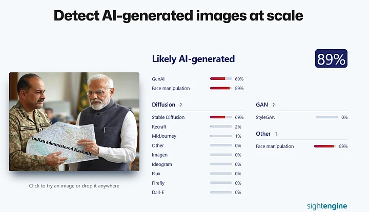 What did AI detection tools show?: We passed the image through two detection tools namely — 'Hive Moderation' and 'Sight Engine' to further verify its authenticity.
