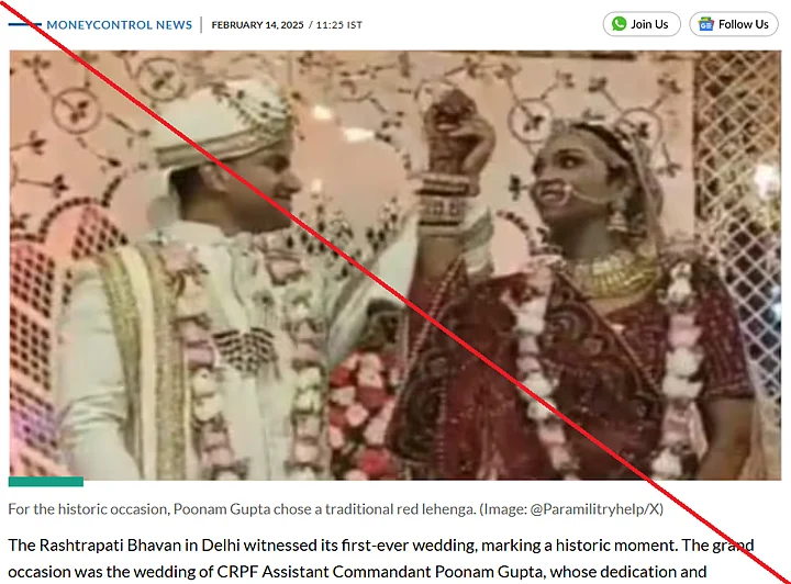 The reports said that Poonam Gupta, who serves as Assistant Commandant in the Central Reserve Police Force (CRPF) became the first person to marry at the Rashtrapati Bhavan.
