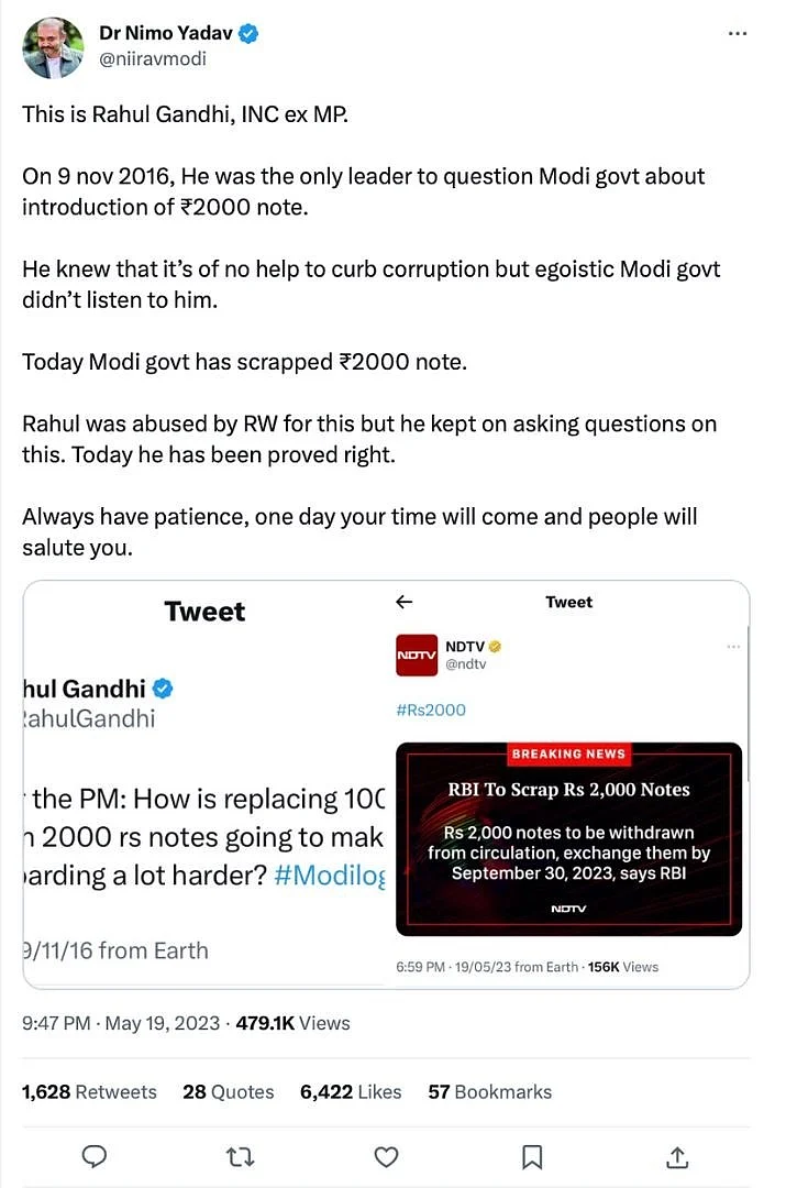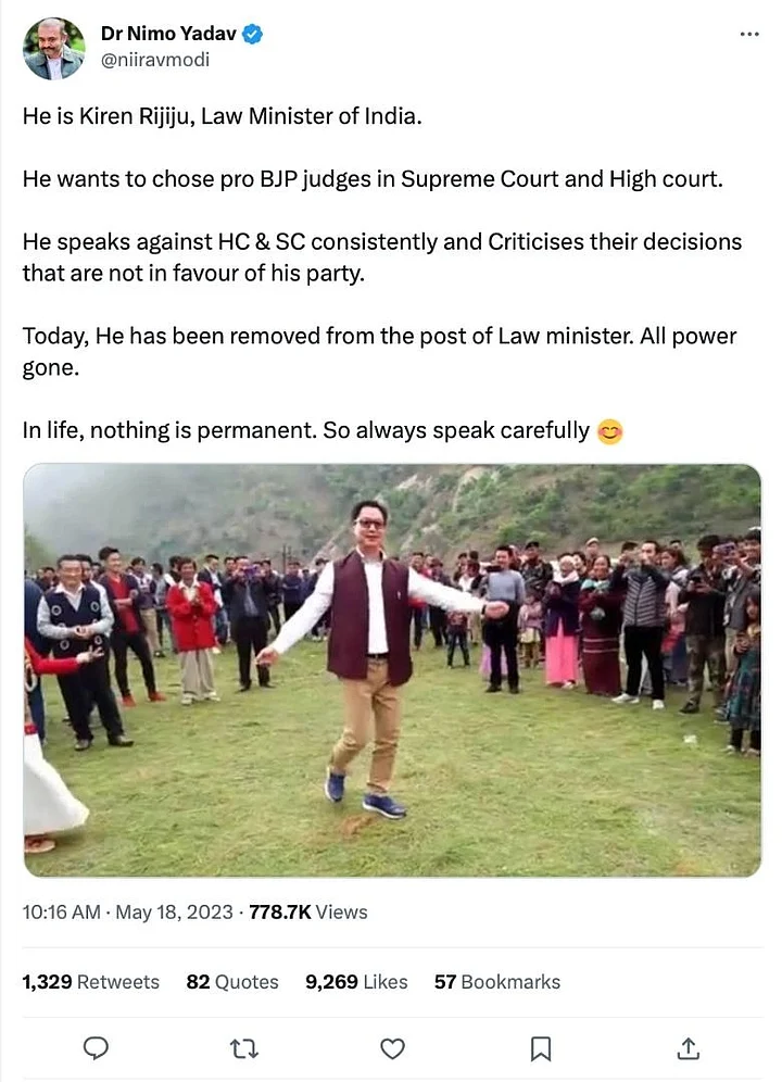 A verified Twitter Blue account named "Dr Nimo Yadav" was one of the users sharing this image. At the time of writing this report, the post had 27 lakh views and had not been taken down despite the image being fact-checked.