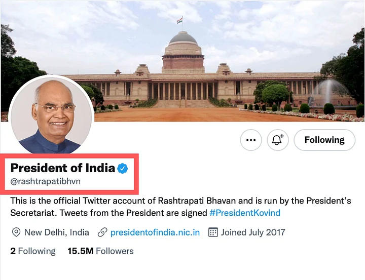 Evidently, a tweet by a fake account operating under a username similar to that of President Ram Nath Kovind's verified Twitter account was shared by social media users.