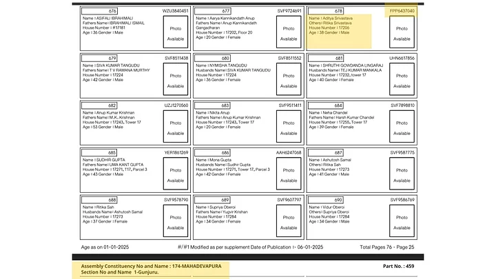 Team WebQoof found that as of 11 August, Srivastava's name is being shown only once in the Mahadevapura constituency, where his polling station number is 458.