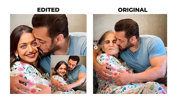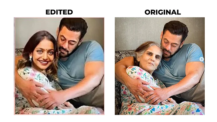 The original images showed Khan posing with his mother, Salma Khan.