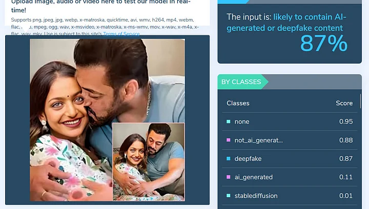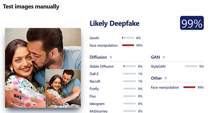 We also ran the image on AI-detection tools, Hive Moderation and SightEngine, which detected face manipulation to be over 99 percent.
