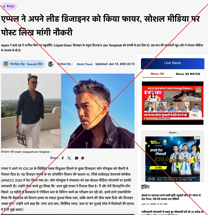 Team WebQoof found that X user Jon Yongfook is not employed by Apple.