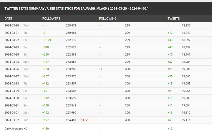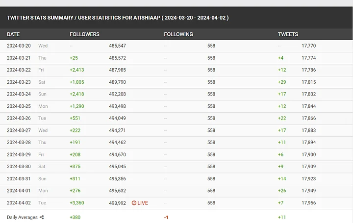 Did the leaders' following numbers change?: On checking Atishi and Bharadwaj's profile on Social Blade, an analytical tool, we found that they have not unfollowed any user from 20 March to 2 April.