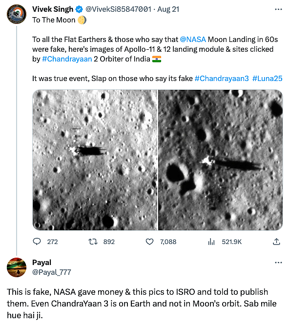 As Indians came together to celebrate the historic landing of the Indian Space Research Organisation’s (ISRO) Chandrayaan-3 mission, a section of the internet was found shaking their heads in denial.