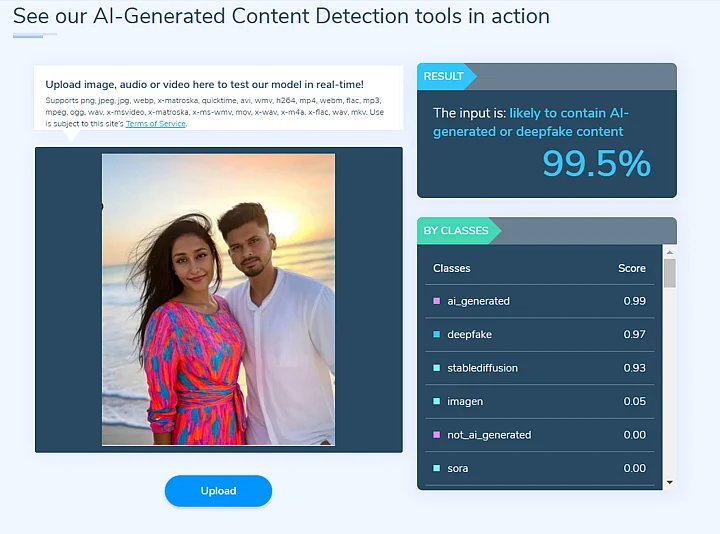 We passed the image through two detection tools namely — Sight Engine and Hive Moderation to verify its authenticity.