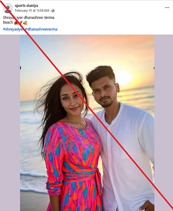A set of two images that show Indian cricketer Shreyas Iyer and actor-choreographer Dhanashree Verma posing together is being circulated on social media platforms as recent visuals.