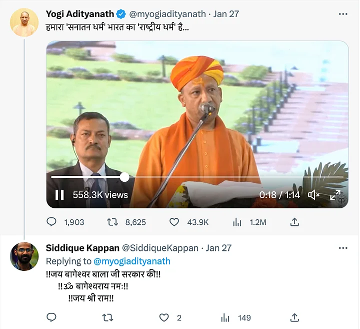 Recently, the account has retweeted tweets about Kappan's release and it has also interacted with several tweets from the Bharatiya Janata Party (BJP) leaders – including the prime minister.