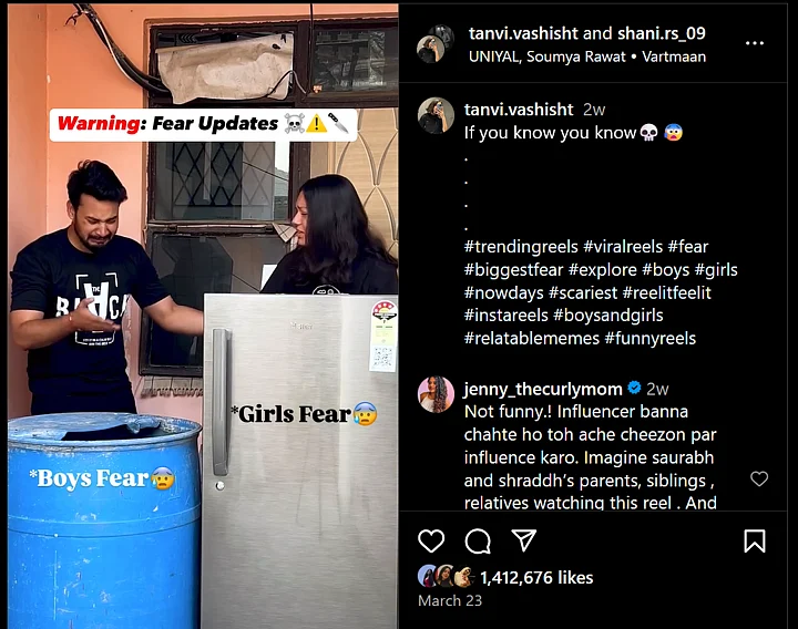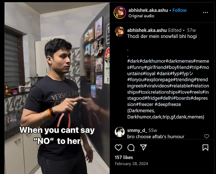 From fridge jokes (referencing real cases where women's bodies were found in fridges in Delhi, Bengaluru and Dewas) to posts that suggest men are now scared to marry, the humour relies on fear—and blame—of women.