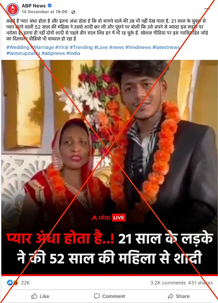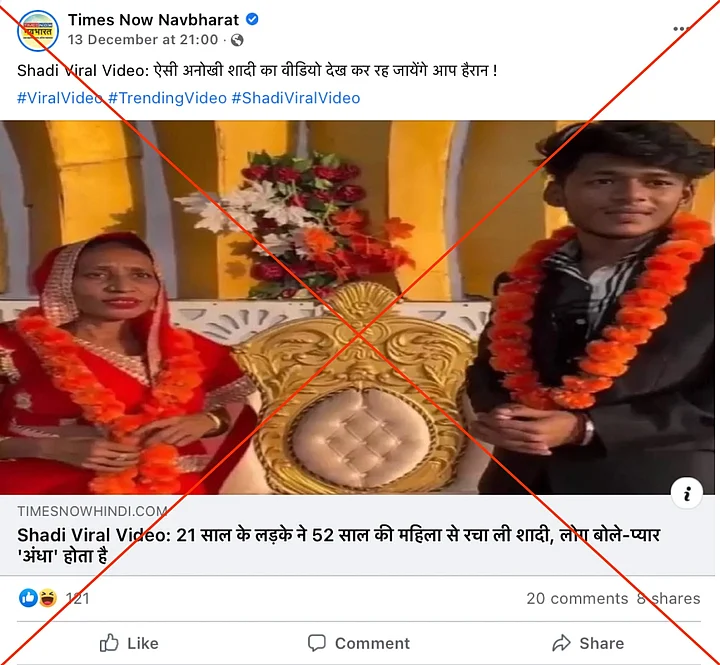 The claim: Several media organisations such as Zee Uttar Pradesh Uttarakhand, Times Now Navbharat, ABP News, among others have shared the video to claim that it shows a 21-year-old man marrying a 52-year-old woman.