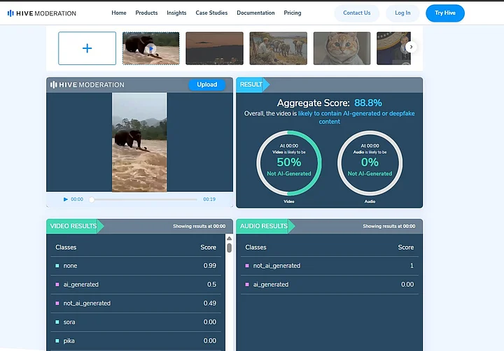 While the first tool showed over 88 percent probability, two detectors of the second tool gave conclusive results of the video being an AI-generated one.
