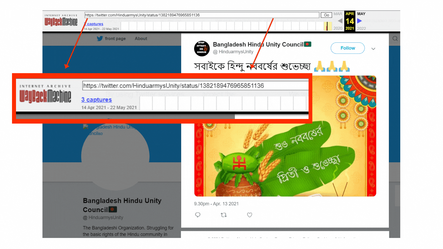 We checked the Twitter handle (@UnityCouncilBD) and found that the handle was previously known as @HinduarmysUnity and the name of the account was "Bangladesh Hindu Unity Council" in April.