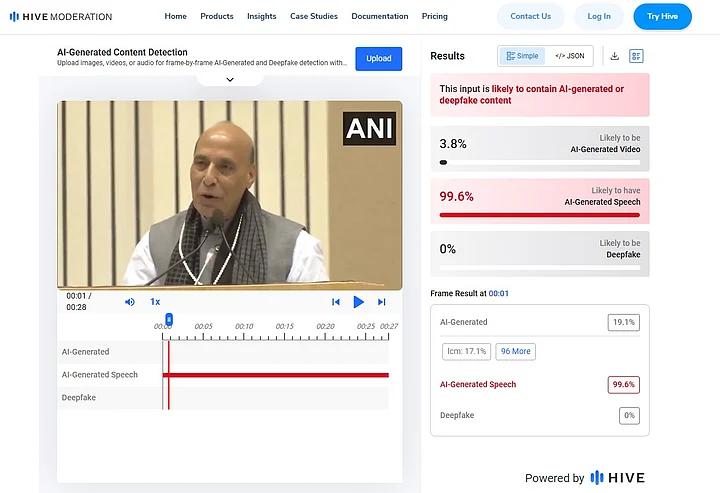 The first tool showed over 99 percent probability of the video carrying "AI-generated speech".