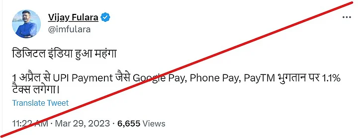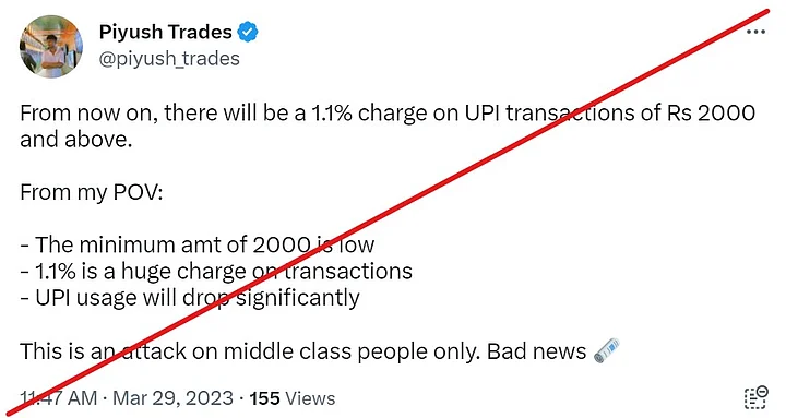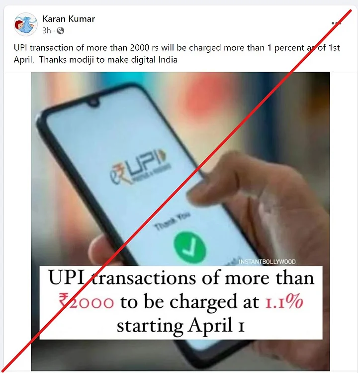 Conclusion: A misleading claim about customers being charged an additional fees of 1.1 percent on UPI transactions is going viral on social media.