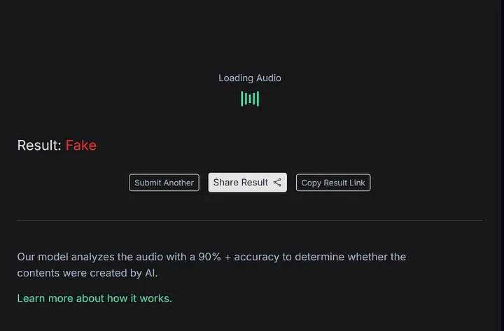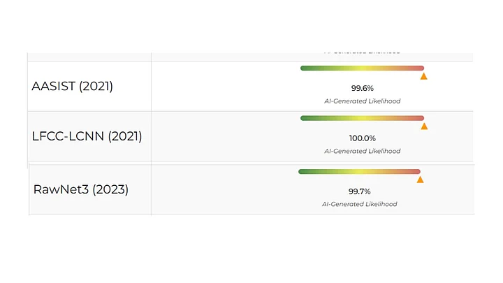 Three detectors of the second tool conclusively showed that the audio was AI-generated and not real.
