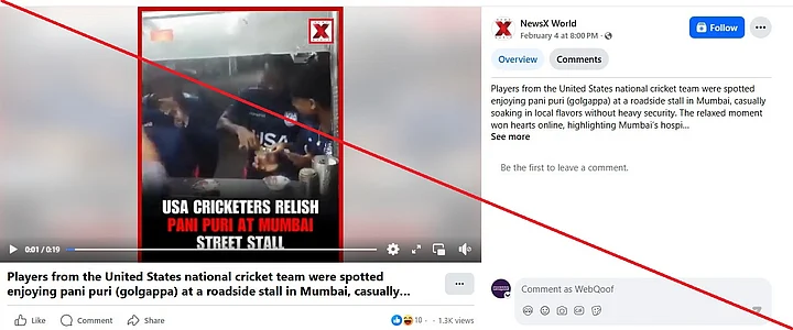 It said that the US cricket team was scheduled to play against the Namibia team. Before the game, players from the US team were spotted eating pani puri on a stall in Gujarat's Anand.
