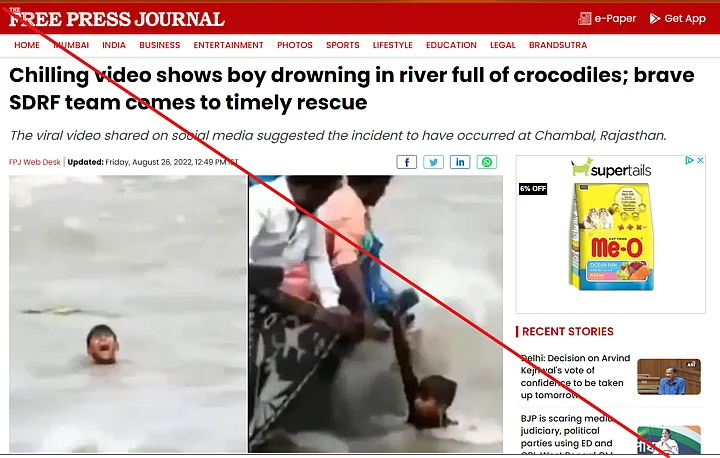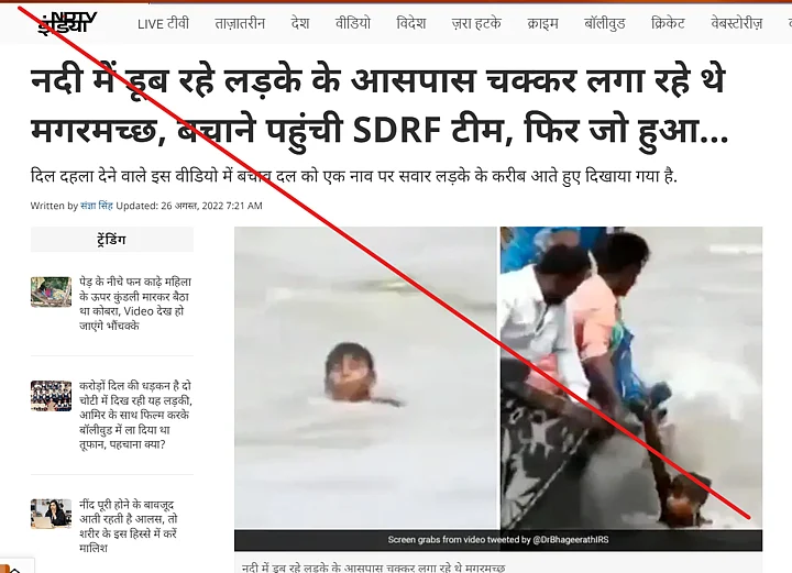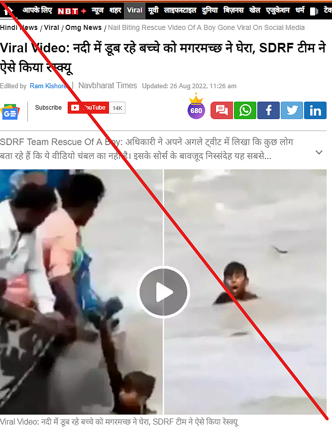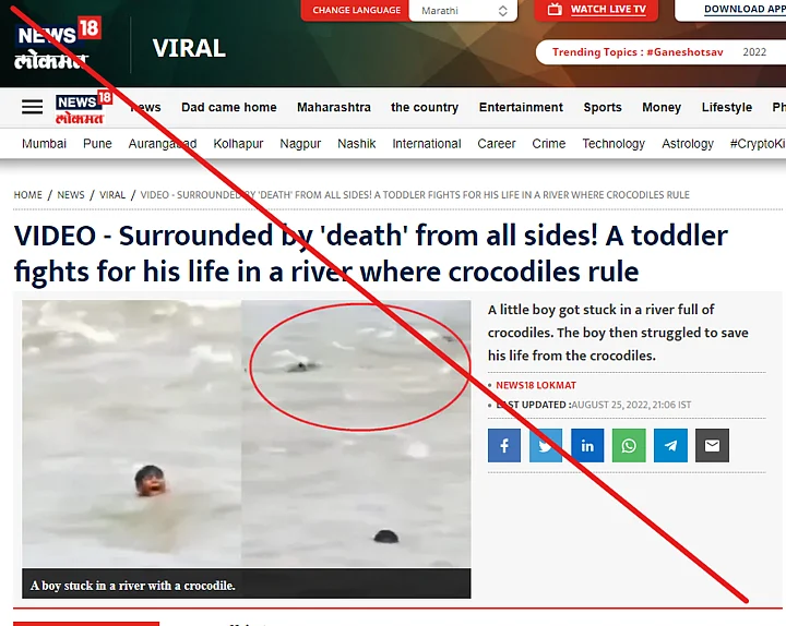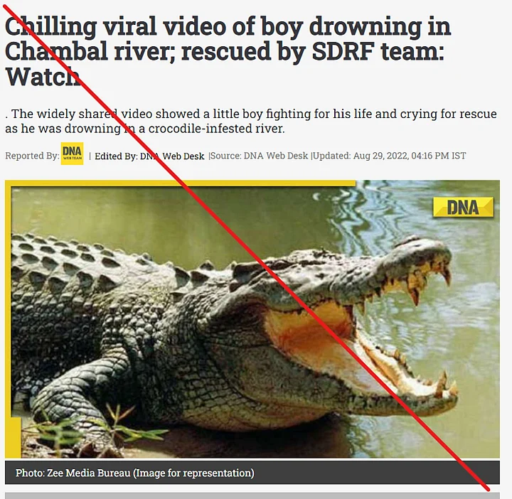 Several news outlets like NDTV, Lokmat News18, DNA, Navbharat Times, Free Press Journal and India TV shared a video showing a child drowning in a water body with a claim that this incident happened in Chambal River, in Madhya Pradesh, where a crocodile was also spotted near him.