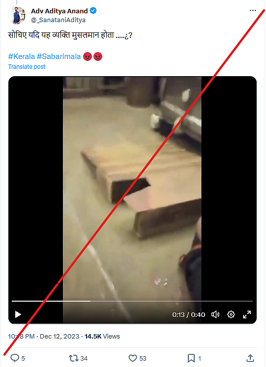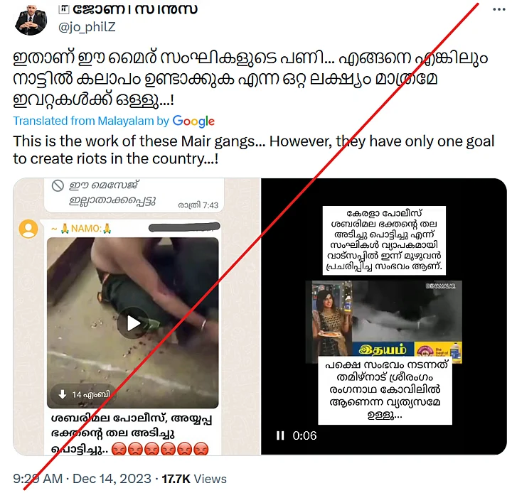 The caption in Malayalam said, "This incident of spreading images of attacking Ayyappa devotee did not happen in Kerala. It has been noticed that this video is being spread widely on social media as if it happened in Kerala. The State Police Chief has instructed to take strict action against those who spread such fake videos."