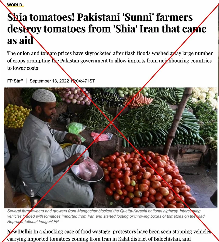 The short clip is being shared claiming people in Pakistan – which is receiving international aid in the aftermath of nationwide floods – were destroying Iranian tomatoes sent to Pakistan, since they came from a Shia-dominated (a sect in Islam) country.