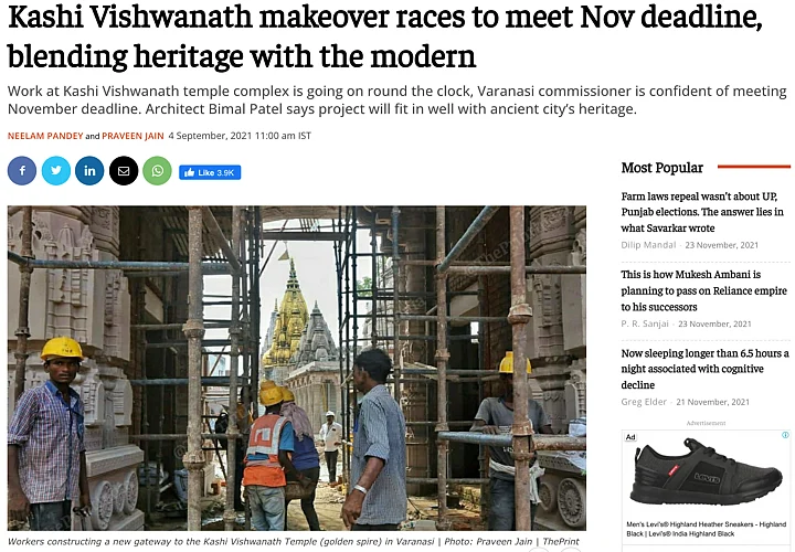 Meanwhile, an article published on 4 September by ThePrint, who had visited the Kashi Vishwanath temple in Varanasi, carried a visual of the undergoing construction work at the site.