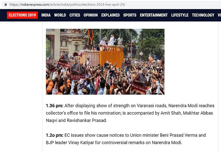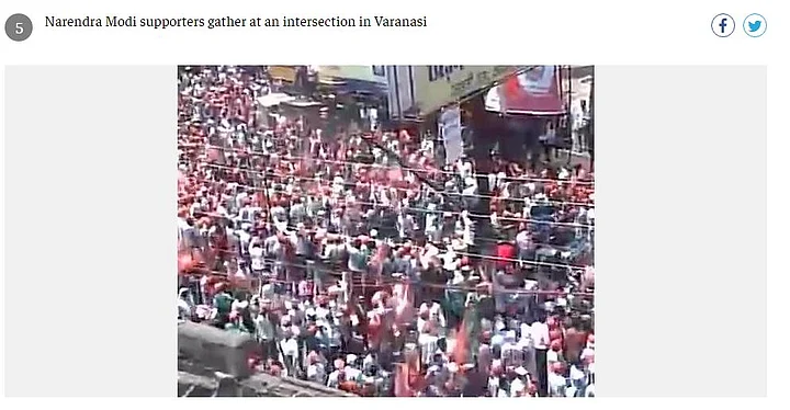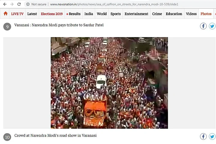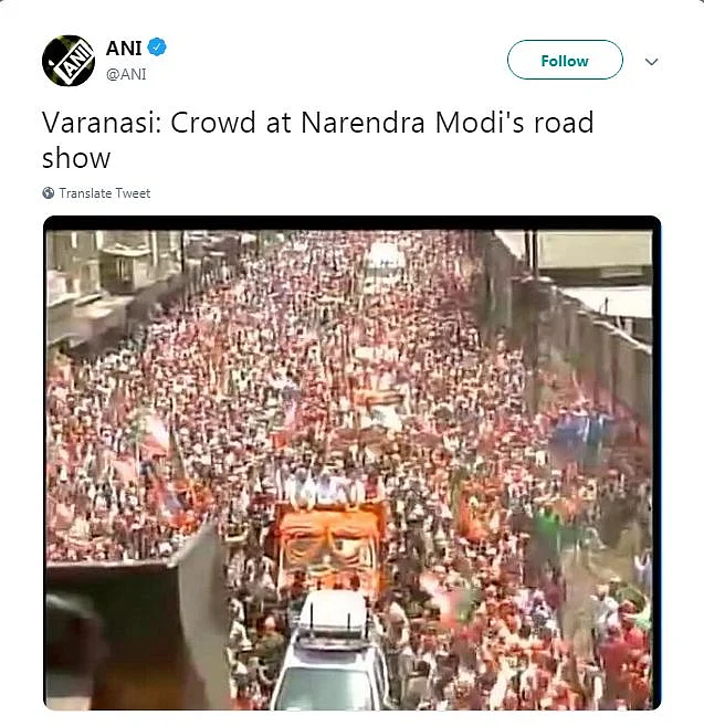 - 01/06The original image was traced back to a still from Narendra Modi’s road show in Varanasi shared by ANI’s Twitter handle in a tweet. (Photo: Screenshot from Twitter)